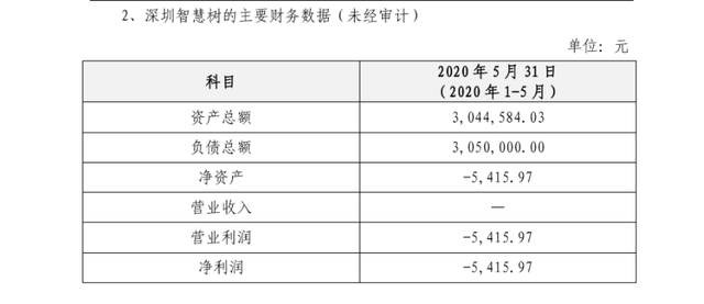在公告中,华体会体育-华体会|华体会官方网站科技披露了深圳智慧树的主要财务数据(未经审计),如下图所示。